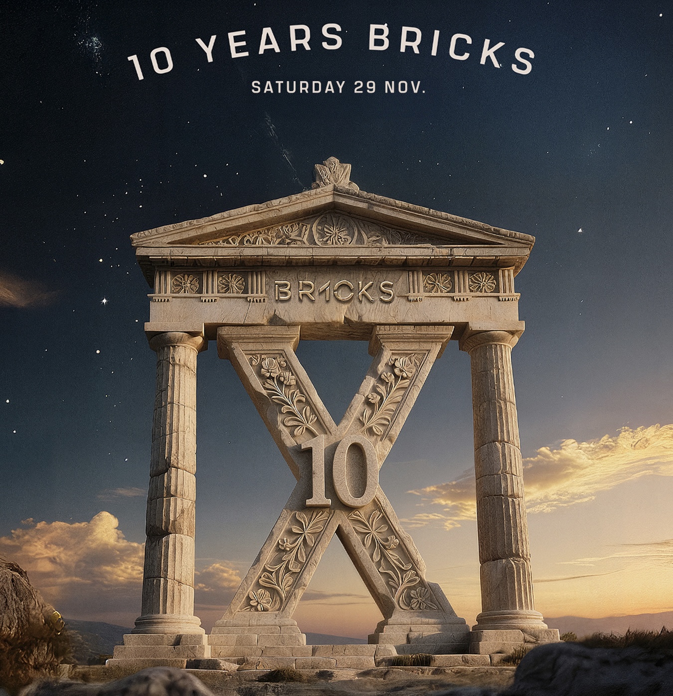 Feiere mit uns 10 Jahre BRICKS am Samstag, 29. November 2025, ab 23:00 Uhr.