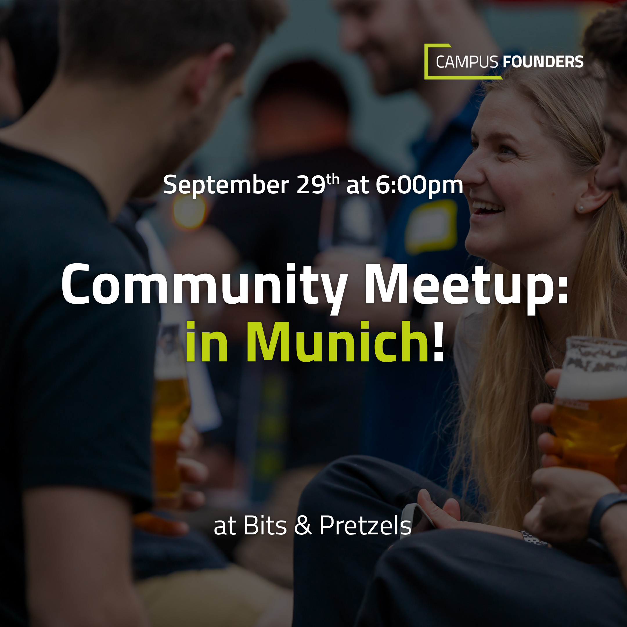 Are you located in Munich but always wish you could come more often to Campus Founders events? Are you attending Bits & Pretzels and want to meet up with other members of our Campus Founders Community?